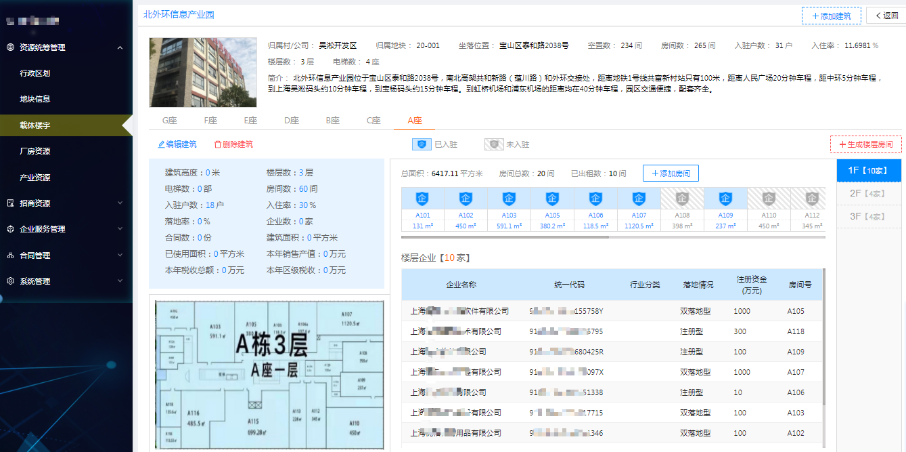 系统以全镇经济地图和运营管控、招商引资进行数图联动,动态化的汇聚地块、商务载体、科技园区、企业等地域的全要素经济信息,并通过大数据的服务进行常态化的自动获取,成为杨行镇可查找、可更新的“经济百度”平台。