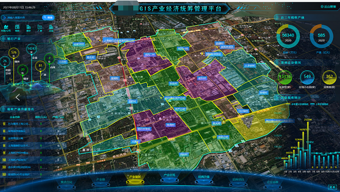 “杨行镇产业经济运行监管平台”的构建,是基于三维GIS地理数据的应用为平台,通过杨行镇区域的全景可视化应用,为职能部门和决策指挥提供现实场景,助推全镇强化经济运行监测、招商引资项目跟踪协调、企业大数据服务以及营商环境的优化。