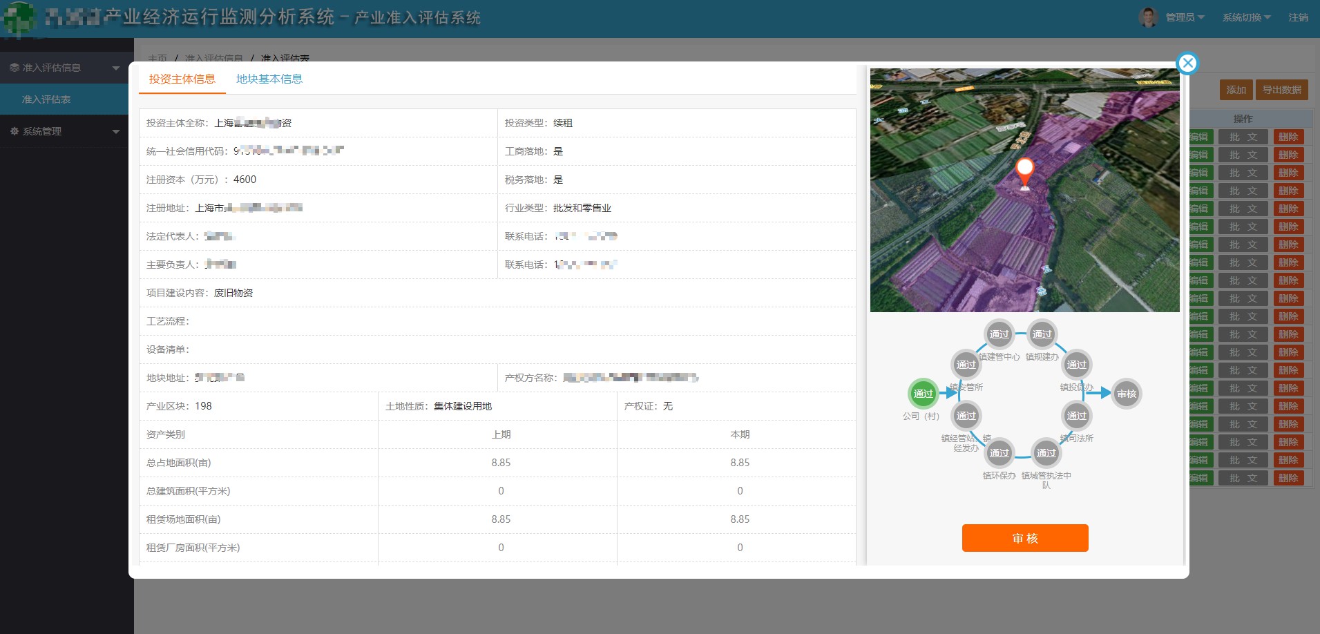 以数图联动的可视化展示,从建立准入评估审批到各部门的审核过程,经最终节点审批形成批文后,与合同信息建立集体资产交易档案。通过PC和移动的数据共享、信息及时推送提醒,随时随地掌控区域内资产流动,提升管理水平。