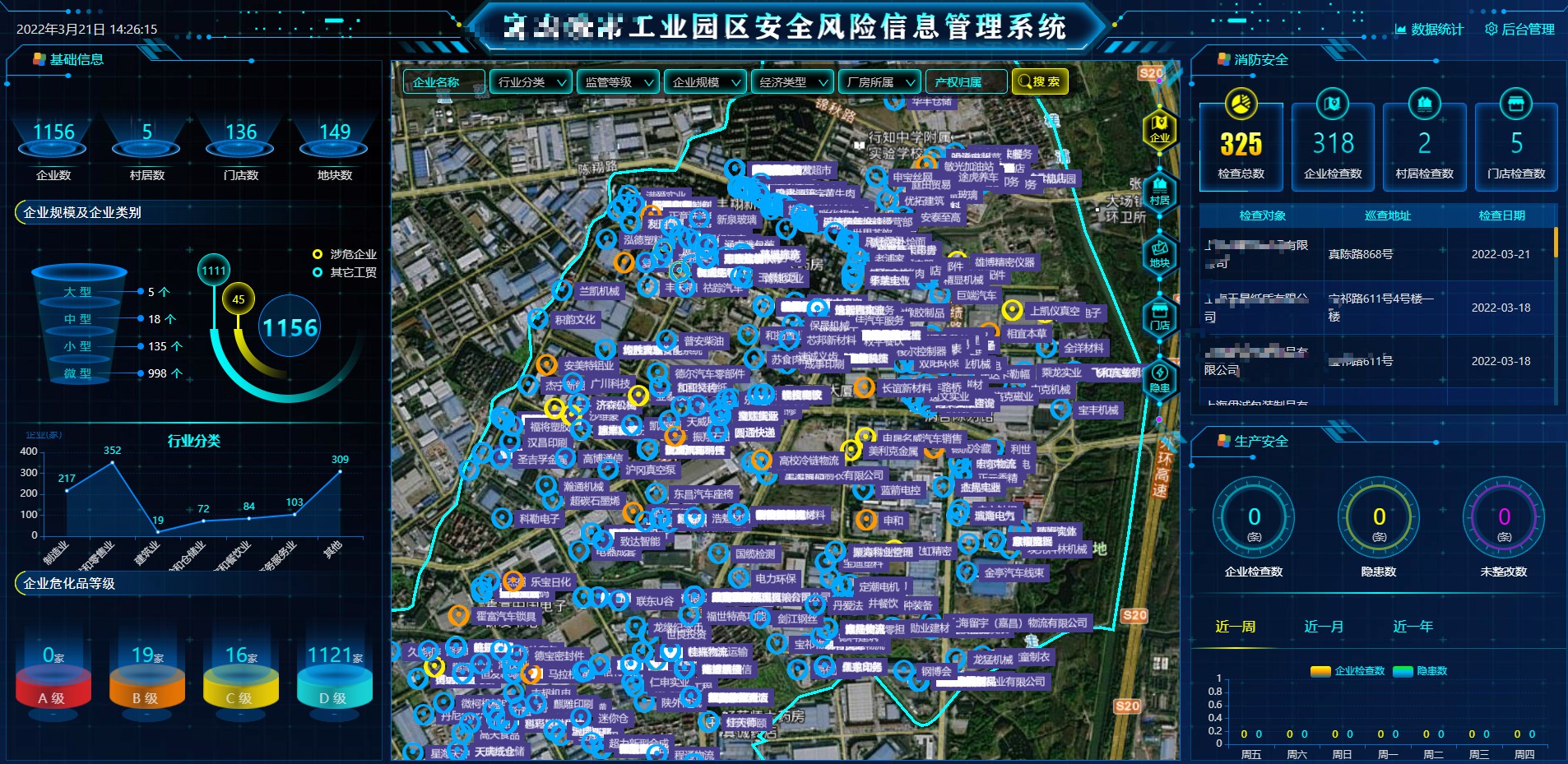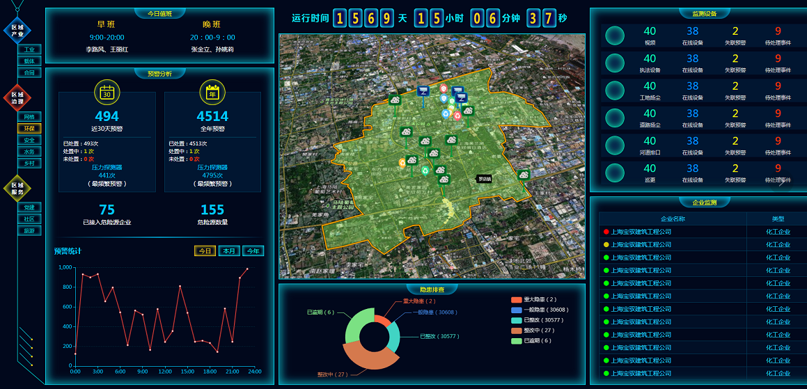 系统对地块运营管理、企业经济效益监测、监管人员的日常巡查、区域内安全隐患的监管等形成人员事件的实时联动,为职能部门的在线查看、指挥、决策提供全面、精细的数据服务,形成工作流程可管控、可追溯的工作应用平台。