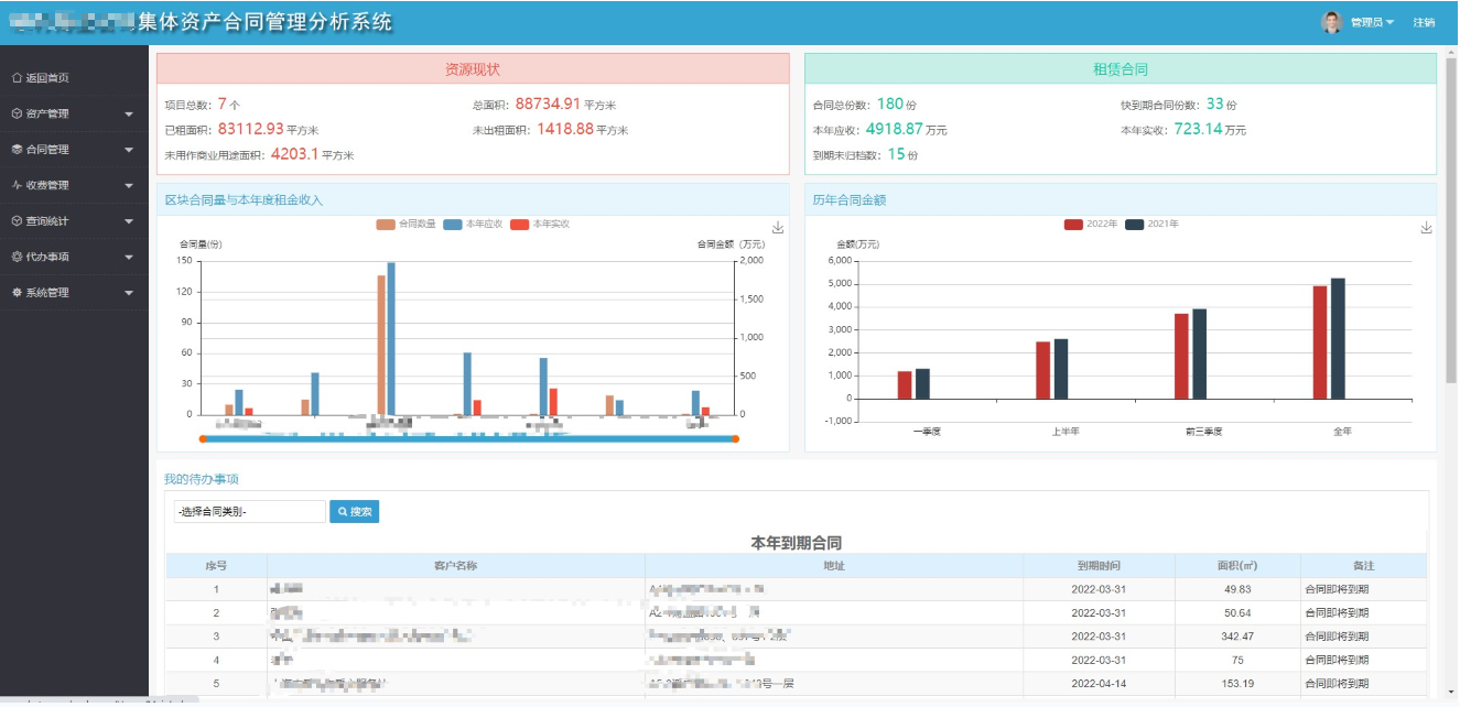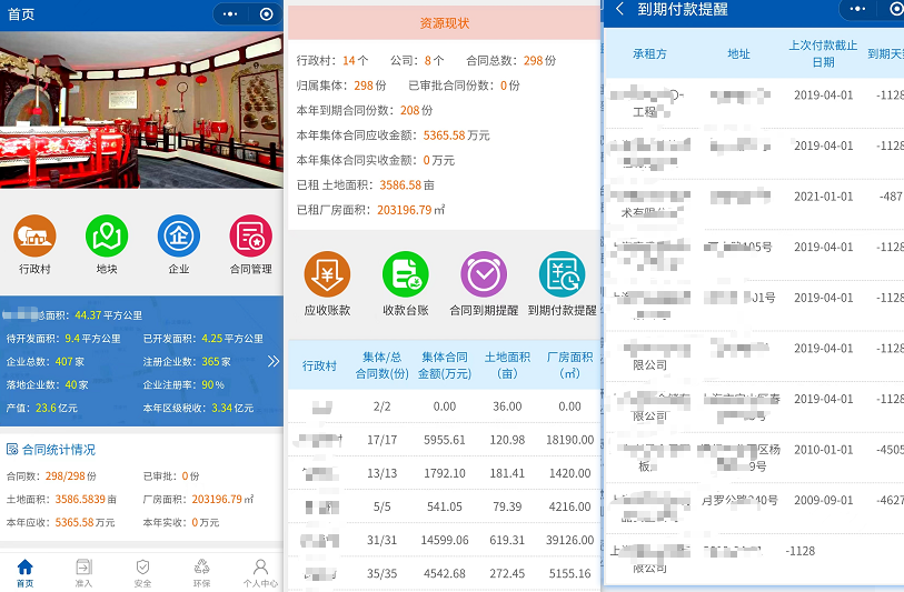 以信息化建设摸清资源家底、盘活存量土地、强化资产合同管理的联动效应,建立有效的事前控制手段,资产出租和合同管理之间强关联,完善对农村集体资产监督管理、农村集体经济可持续发展的维护和促进提供决策支撑。