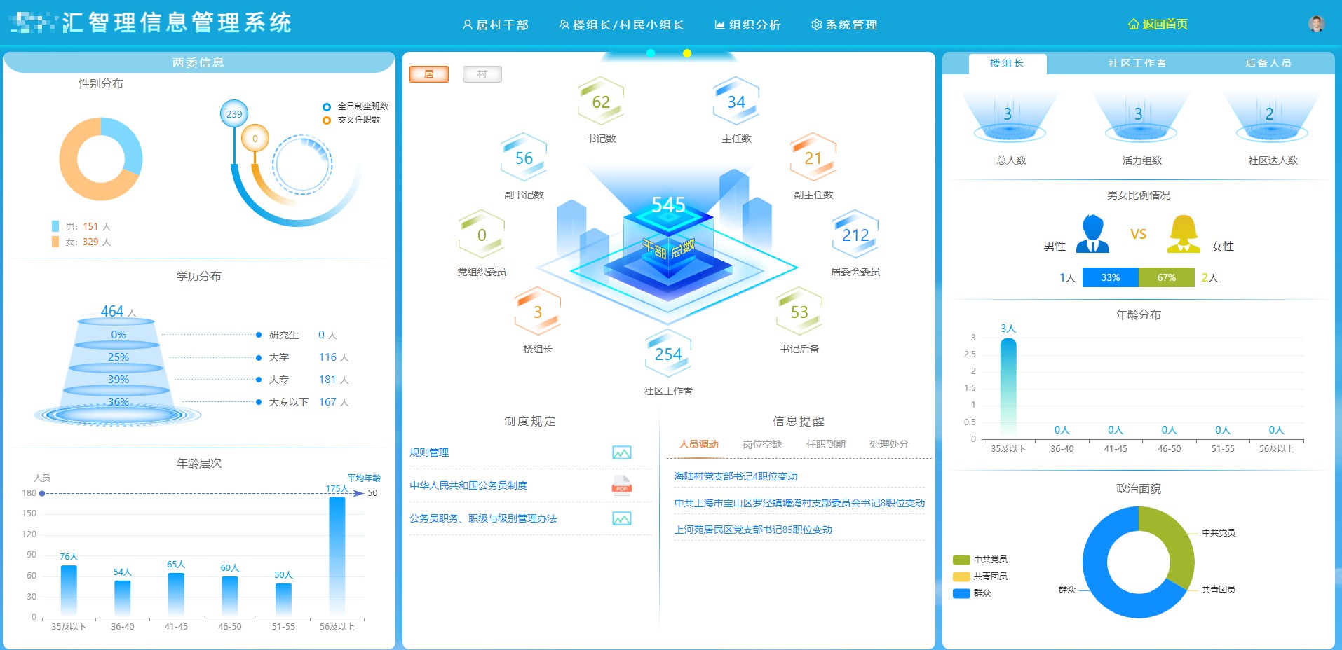 借助信息化手段,精准描绘出基层治理队伍画像,加强党委对党建网格队伍的统筹管理,动态跟踪,分析研判能力,强化监督管理,增强政策制定,决策部署的及时性、针对性和有效性。