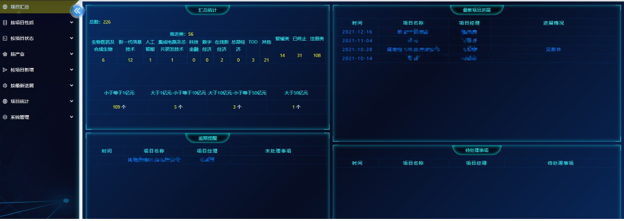 围绕重点项目、产业集群、招商引资、精准施策绘制出全区的招商项目、企业情况,构建大数据应用场景,辅助区域经济决策、提高招商效率、培育新动能,要成为区域招商管理工作的重要数据支撑平台。