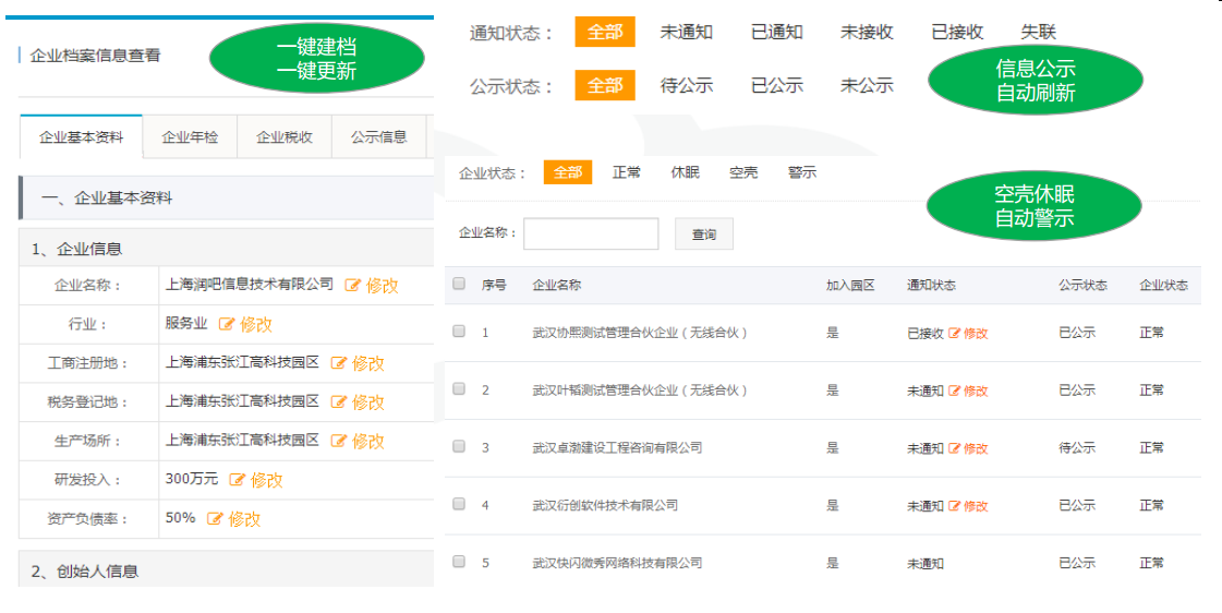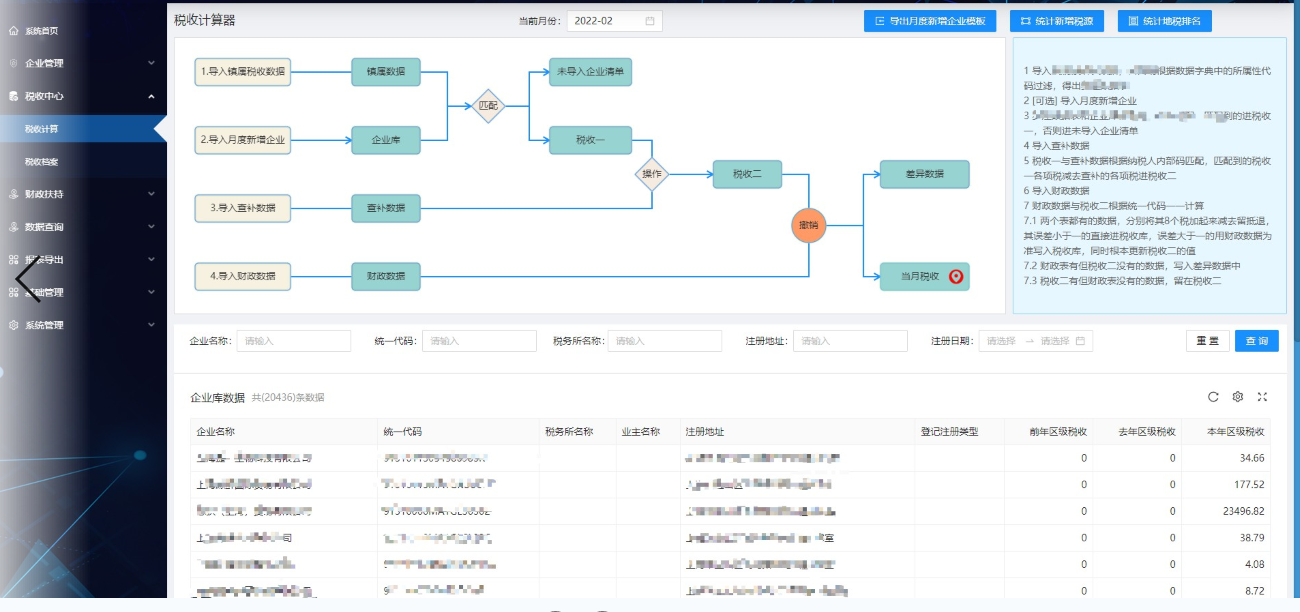 构建“企业财税扶持管理系统”,统筹区域内经济要素,通过整合、汇聚和分类,实现企业工商信息、财税数据的来源唯一、全面覆盖和同步更新,通过园区经济数据的完善提升产业园区域经济运行的精细化水平。