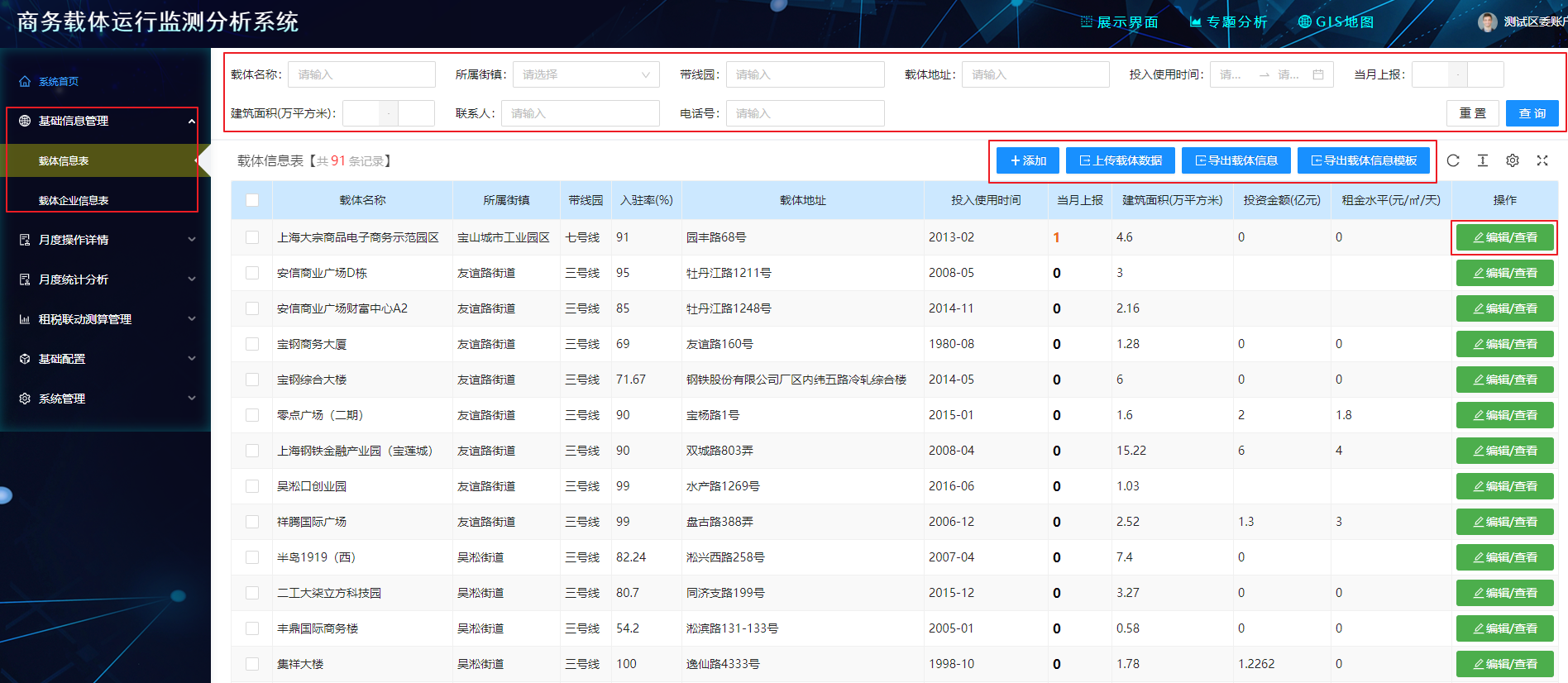 通过系统平台,可以帮助领导加强楼宇和企业资源管理,提高行政管理效率能级,通过一楼一档数据库、入驻企业动态管理、楼宇入驻率及空置率信息的精准掌控加强对楼宇载体的监管,提升政府财政经费支出的使用效果。