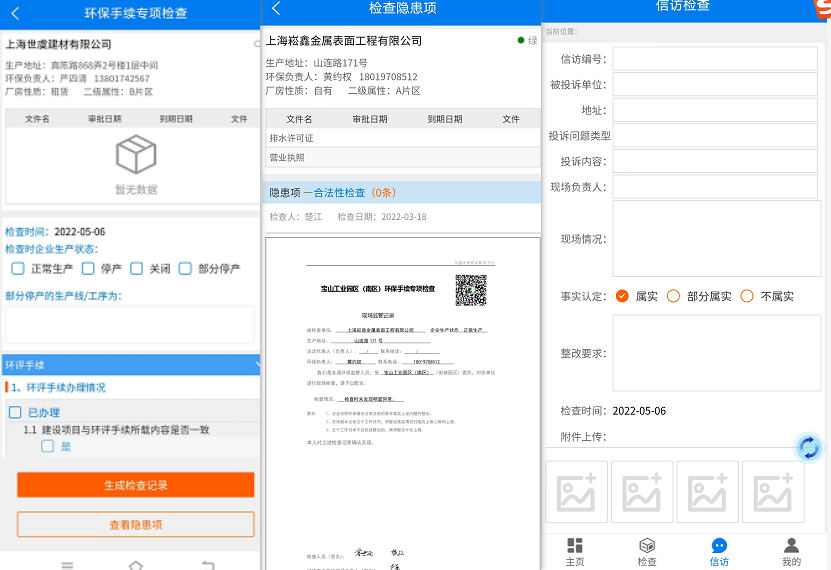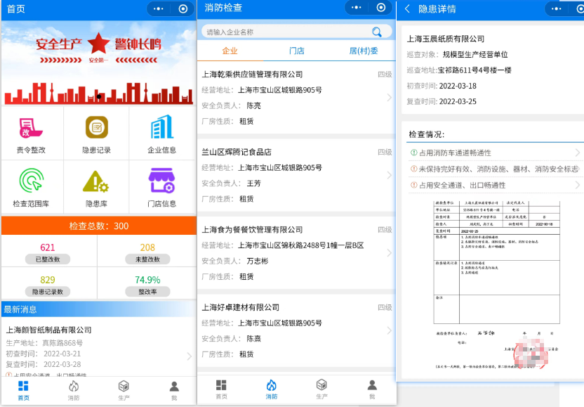 在日常巡查工作中,运用移动端设备对检查情况的随时拍照、随 时上传,开立整改单、跟踪隐患消除,形成管理闭环,自动完成安全的管理台帐。