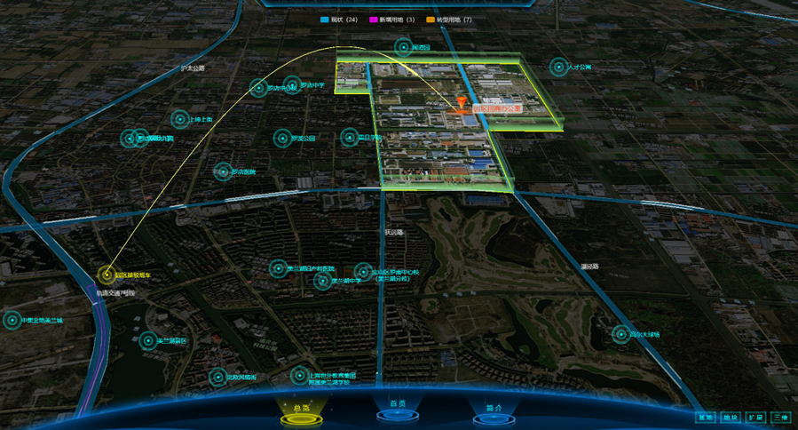 基于三维GIS地理数据应用为平台,通过区域内的全景可视化应用,为职能部门和决策指挥提供现实场景,助推区域内强化经济运行监测和安全协同监管、招商引资项目跟踪协调、企业大数据服务以及营商环境的优化。