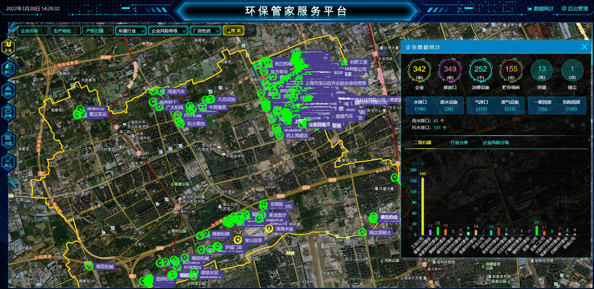 通过丰富的环保监测感知体系,对水、声、空气、土壤、固体废物和重点排污企业等环保要素统一管理,建立互联互通的企业环保主题数据库,进行高效及时地动态巡查,形成一张环保地图、构建一张监测网络、生成一张工作清单。平台实现政府部门、第三方服务公司和企业之间的多向循环,推进政府治理能力,促进第三方专业服务,提升企业生态效能。